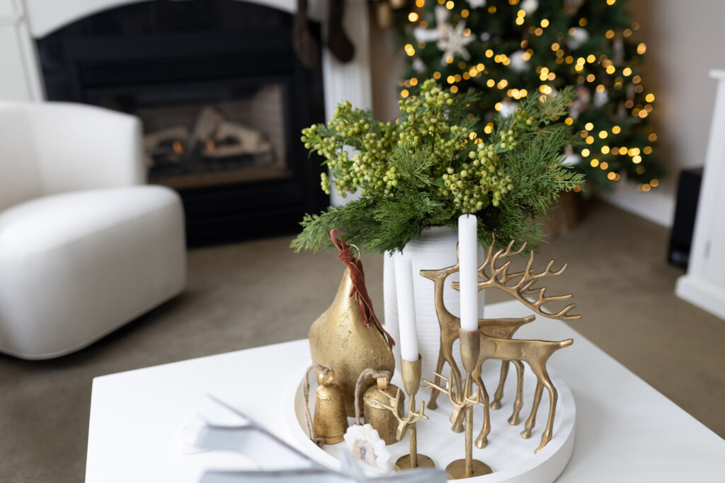 Thoughtfully curated vignettes bring warmth and personality to the family room, blending festive accents with timeless style for a space that feels both inviting and full of holiday cheer.