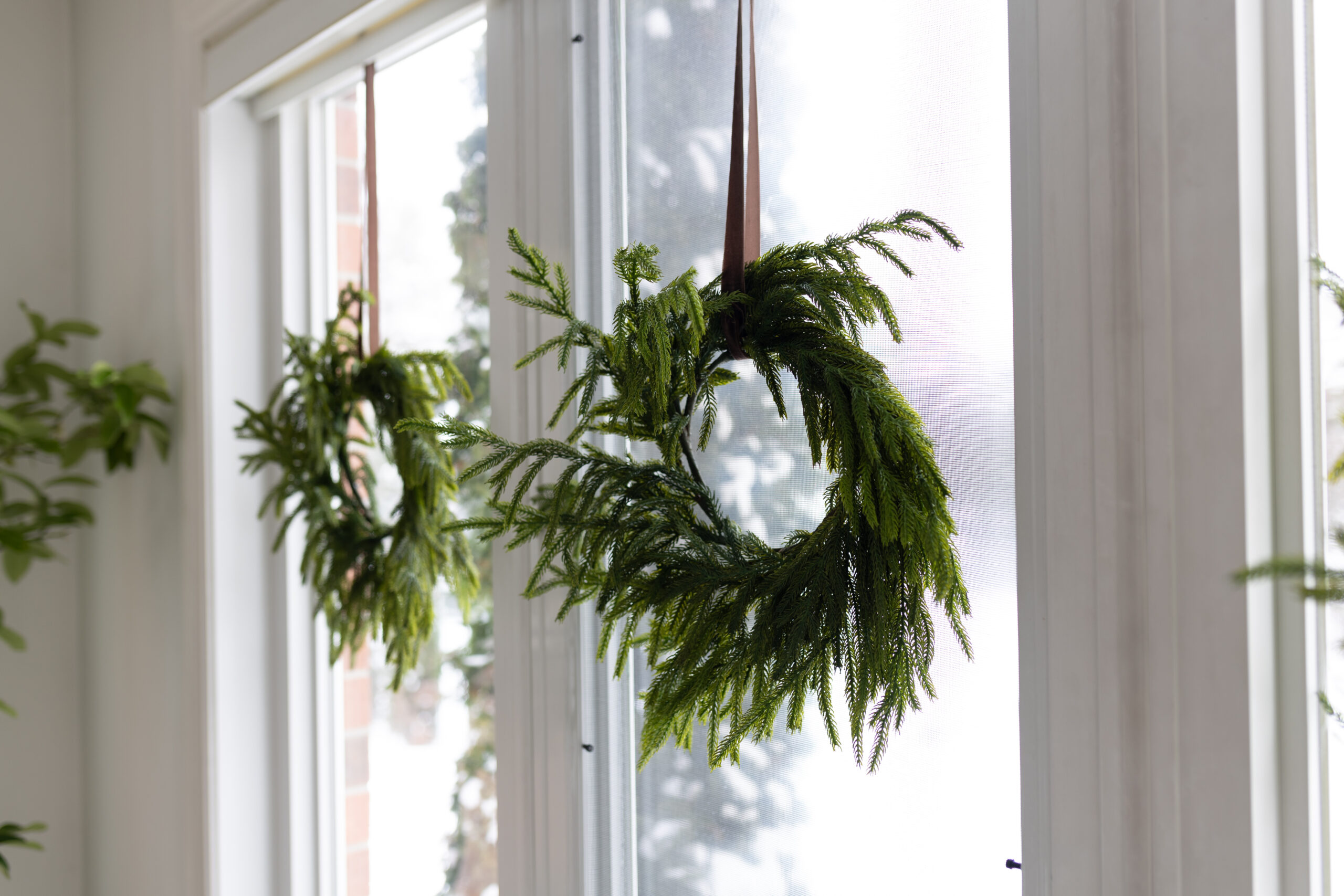 Keeping the decor light and fresh in the kitchen and eating area is intentional, allowing natural light to pour through the wreaths in the bay windows.